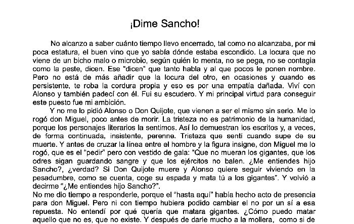 La perdurabilidad de una obra depende de su excelencia Fecha de Publicación: 09/06/2025 Pilar Rodríguez Jiménez Profesora de Lengua Castellana y Literatura … porque si Flaubert dijo en cierta ocasión, «Mme. Bovary c´est moi», también podría decirse que Don Quijote y Sancho sont tous nous… A través de ellos descubrimos la encarnación de todas las actitudes humanas. Irónicamente, personajes de ficción sobrepasan dicha dimensión y se convierten en entes reales que nos muestran y descubren las grandezas y miserias del hombre en su más auténtica esencia. Ambos nos invitan a acompañarlos en su peregrinar aventurero, nos alientan y animan a reflexionar, a esbozar una cálida sonrisa, a replantearnos nuestro perfil personal, a abrir nuestra alma a otra magnitud de la existencia y a bucear por los más sórdidos rincones de la vida, enseñándonos y dándonos una lección de grandeza al contender con esa galería de prototipos que desfilan por sus espacios. Ellos somos nosotros, dibujados con la sutil y sabia pluma de Cervantes, y merecen ser Patrimonio de la Humanidad no solo de manera oficiosa, sino oficial, porque poseen un valor universal que perdurará por los siglos de los siglos. En el prólogo, el autor se dirige al «desocupado lector» diciéndole que «aunque hubiese querido que mi libro fuese hermoso, gallardo y discreto, su estéril y mal cultivado ingenio solo pude engendrar un hijo avellanado, antojadizo y lleno de disquisiciones. Lo engendré en una cárcel donde toda incomodidad tiene su asiento y donde todo triste ruido hace su habitación». Qué poca ambición se escondía en este hijo feo y, sin embargo, qué contradicción, al erigirse dicho vástago en el heredero universal de la mayor gloria que un escritor pueda tener. Al final de ese prólogo, el supuesto amigo incita a Cervantes a escribir de tal manera que «leyendo su historia, el melancólico se mueva a risa, el risueño la acreciente, el simple no se enfade, el discreto se admire de la invención, el grave no la desprecie ni el prudente deje de alabarla». Difícil tarea la de Don Quijote y Sancho para encandilar a esta caterva de mundanos, agradando a todos, contentándolos, divirtiéndolos, logrando su aprecio y conquistando sus corazones. Y lo consiguen, paradójicamente, a partir de una locura tan bien trabada que resulta verosímil. De forma mágica, la Humanidad toma a Don Quijote y a Sancho como patrimonio, porque encarnan unos valores que transmiten valentía, generosidad, sabiduría, honestidad, responsabilidad, etc. Don Quijote afirma haberse hecho caballero para socorrer a «los menesterosos huérfanos, viudas, doncellas que se encuentren en una situación de desvalimiento» (I, 17). Está convencido de la necesidad que de su actuación tiene el mundo. Él nació para salvarnos. Contrariado con el comportamiento de la sociedad de su tiempo, no le queda más remedio que resucitar a la caballería andante, a pesar suyo, y luchar contra los malvados: […] «estoy por decir que en el alma me pesa de haber tomado este ejercicio de caballero andante en edad tan detestable como es esta en que ahora vivimos» (I, 38), […]«triunfan ahora, por pecados de las gentes, la pereza, la ociosidad, la gula y el regalo» (II, 20). Y por eso es considerado loco, por mantener una actitud en contra de sus contemporáneos, que no están dispuestos a cambiar sus conductas y seguirle. Y, a pesar de ser un incomprendido, es feliz; se siente a gusto, porque lo importante es el efecto que sobre sí mismo tiene el mantenimiento de sus ideales: […] «después que soy caballero andante soy valiente, comedido, liberal, bien criado, generoso, cortés, atrevido, blando, paciente, sufridor de trabajos, de prisiones, de encantos […]» (I, 50). Y cómo olvidarnos de los buenos consejos que también sabe dar Sancho a su señor, siempre desde la moderación y con el temor a Dios, ya que en ello reside la sabiduría: actuar siempre con prudencia, con paciencia, darle tiempo al tiempo que todo lo cura, mantener la calma porque puede dar lugar a nuevas oportunidades, aceptar lo inevitable de la muerte, etc., es decir, la visión de una persona sencilla, humilde, pero llena de sabiduría popular que nos ilustra en todo momento. ¿Habrá mayor espíritu redentor por el cual les tengamos que estar eternamente agradecidos? ¿Acaso no son un modelo de conducta a seguir? ¿No nos presentan un manual de comportamiento ejemplar? ¿No son sus consejos paladines recurrentes para fabricar un mundo más humano? ¿No hurgan en nuestras conciencias para despertarnos de la modorra maligna del affaire diario? El amor, la libertad, la verdad, la belleza, la desigualdad, el abuso de poder, la fealdad, la apariencia, la injusticia, la falta de caridad, la hipocresía, la liberación de la mujer, etc., quedan expuestos como letreros que se bambolean en cada uno de nosotros. Y son estos dos personajes quienes los ponen al descubierto, uno desde el idealismo y el otro desde el pragmatismo, convirtiéndose en verdaderos psicólogos de una sociedad atemporal y sempiterna. Todo ello representa una invitación para realizar el bien, en pro de los otros. Una llamada urgente a corregir una sociedad que se desmorona por su propia imperfección—recuérdese la época transitoria entre el s. XVI y XVII en la que vivió Cervantes—, y que, pese a los siglos transcurridos, sigue vigente. Necesitaríamos múltiplos y múltiplos de Quijotes y Sanchos para enderezar las tropelías actuales. Dos personajes que, pasando tanto tiempo juntos, crean entre ellos una relación de dependencia, unas veces, de enfrentamiento, otras, de influencia mutua, pero con afecto y respeto del uno por el otro. Nos dan una lección de convivencia inigualable. Su relación gana en afabilidad y hondura, y la sensibilidad natural de ambos pasa a prevalecer sobre cualquier interés o deseo. Sancho ensalza a su señor, «no sabe hacer mal a nadie» (II, 13). Don Quijote confirm